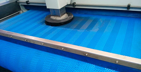 Disponíveis em versões com acabamentos lisos ou com coberturas aderentes, podem ser fornecidas com taliscas, guias e bordas de contenção, garantindo aderência controlada, estabilidade dimensional e segurança no manuseio de peças pesadas ou polidas.